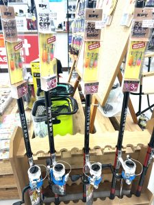 サビキ竿3.6mに1000番スピニングリール+スッテセットを一つにした釣り竿セットをご用意しております。