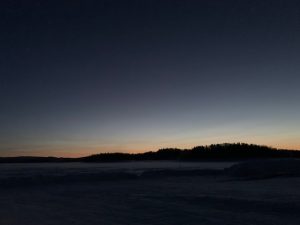 【カメラ下沖】に場所を決めテント設営するともうすぐ夜明け