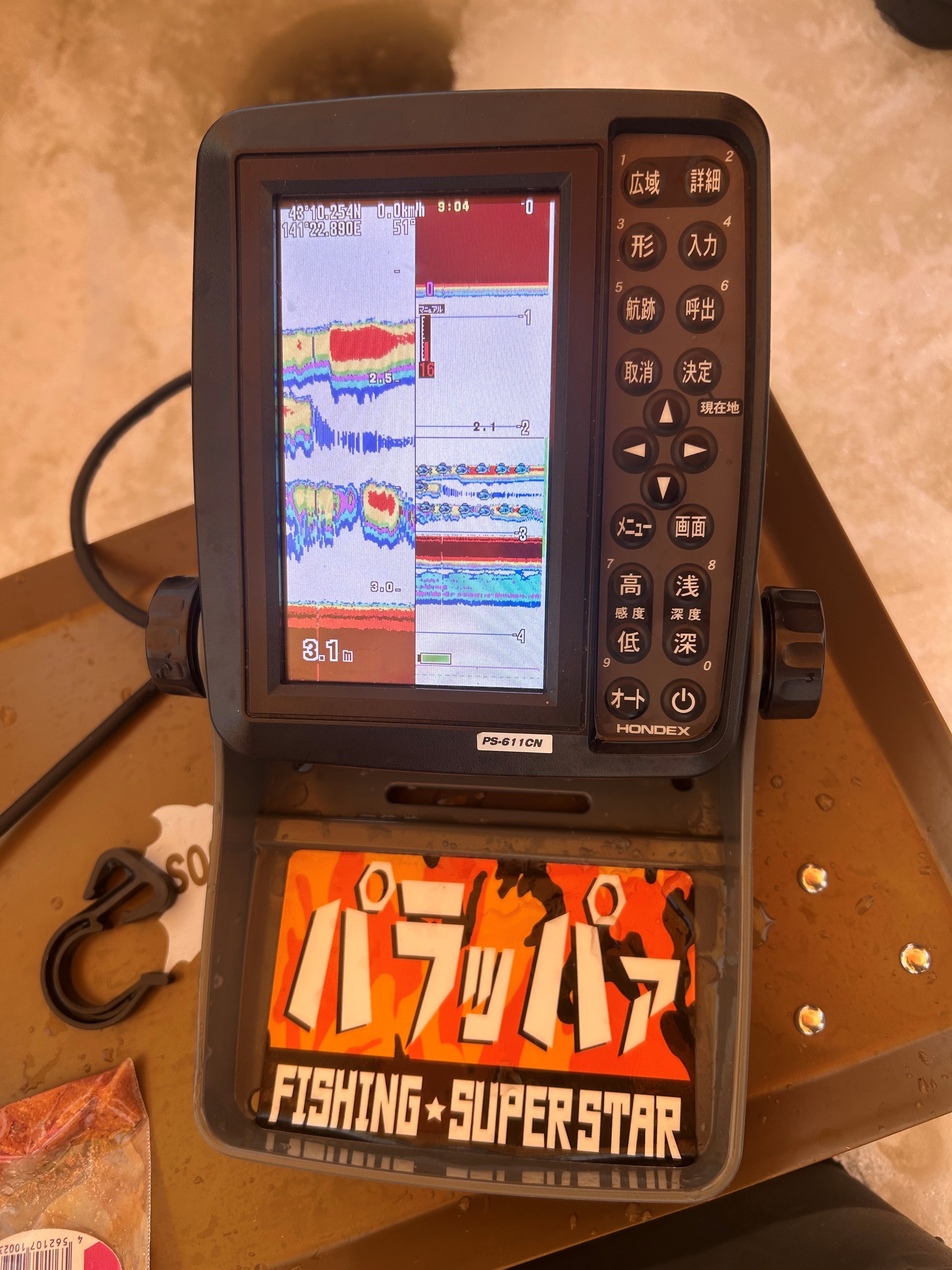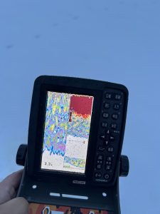 釣り場選びをする為、開けた穴が魚の反応がありました。(左画像)