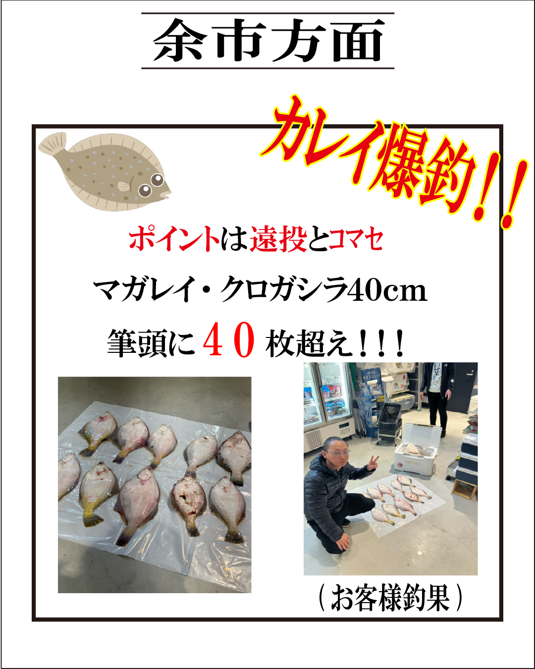 【お客様釣果情報】余市方面カレイ爆釣!!
