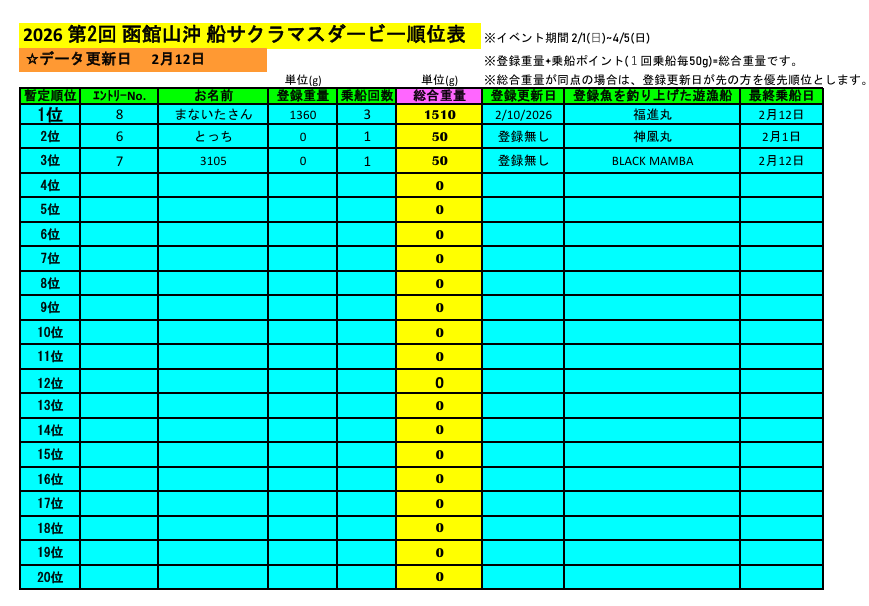 ただいま暫定第1位のまないたさん様も、ご乗船🚢
