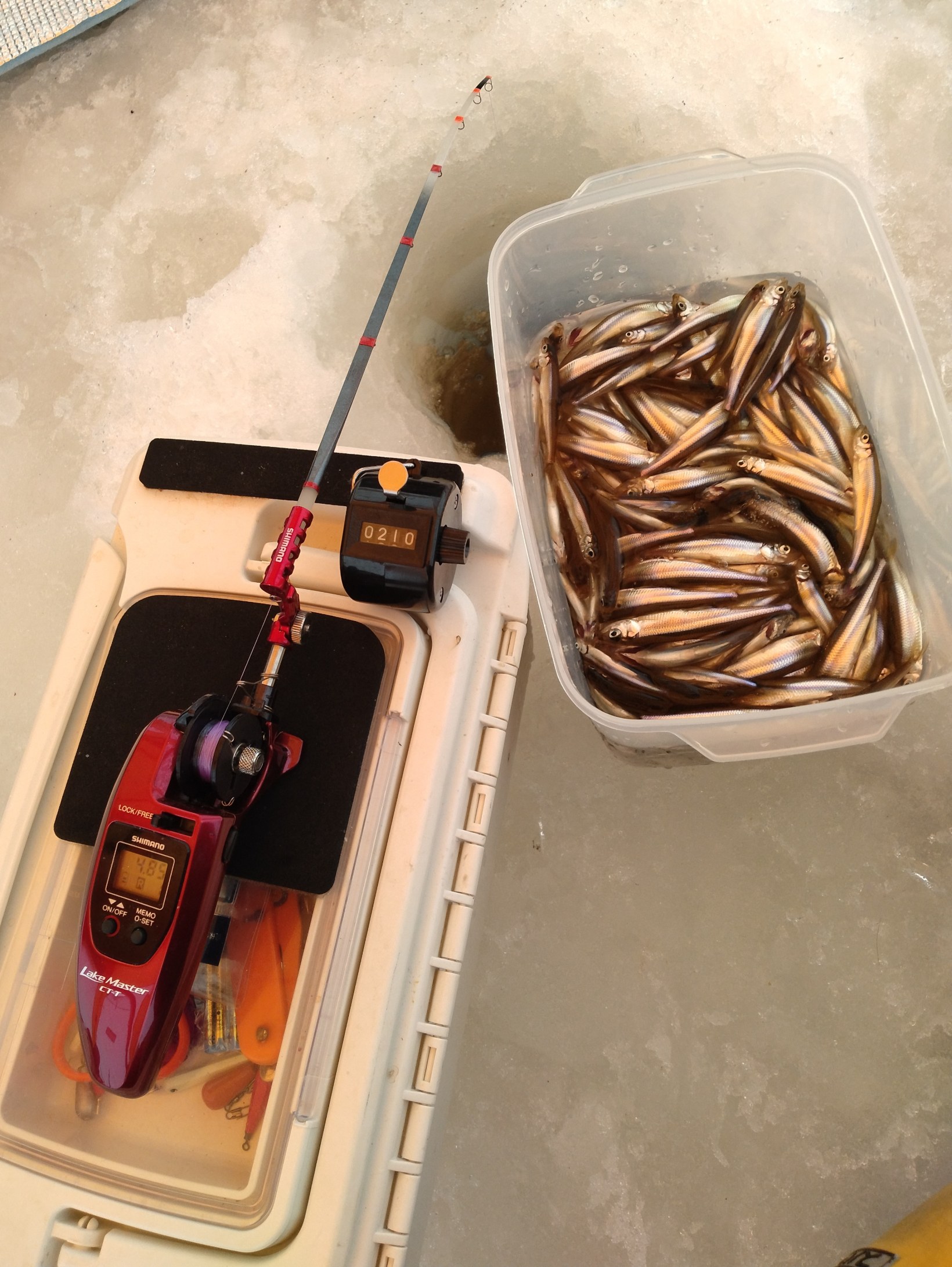 阿寒湖にてワカサギ釣り。