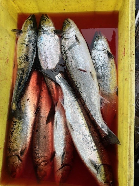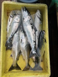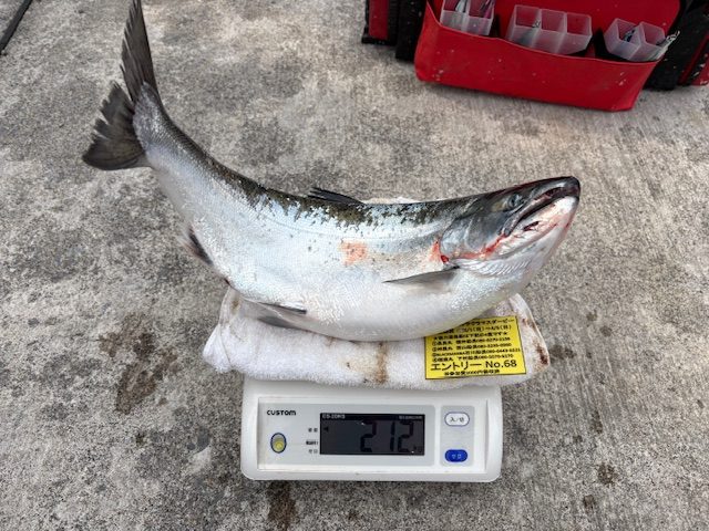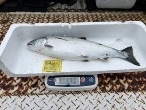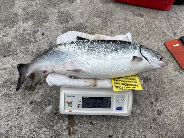 ↓㉒K・Y様はバケ釣りにて7本のサクラマスをGET!!そのうちの1本が1560gでご登録となりました👏
