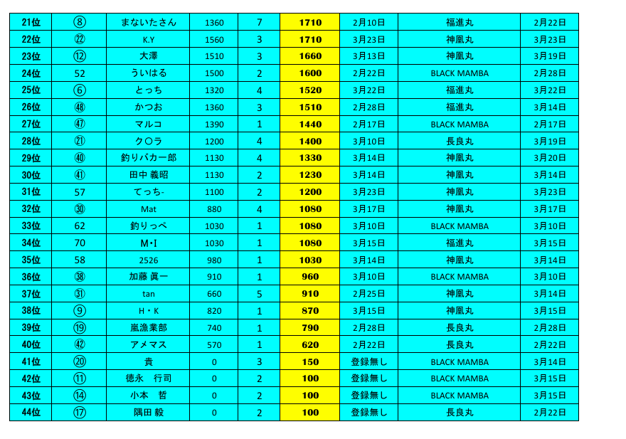 3/23(月)遊漁船 長良丸 福井船長、神凰丸山田船長、ブラックマンバ石川船長より情報頂きました。