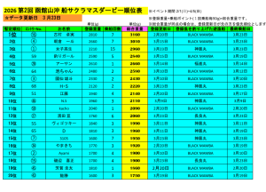 ● 長良丸 福井船長は、3/23(月)2名のサクラマスダービー参加者を乗せ、他お客様2名で山沖に出港