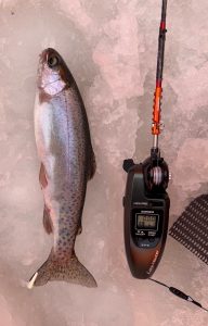 まず初ヒットが自分の穂先にニジマスがヒットして仕掛けがやられて友人達から驚きと笑いの声が・・・