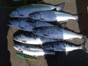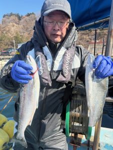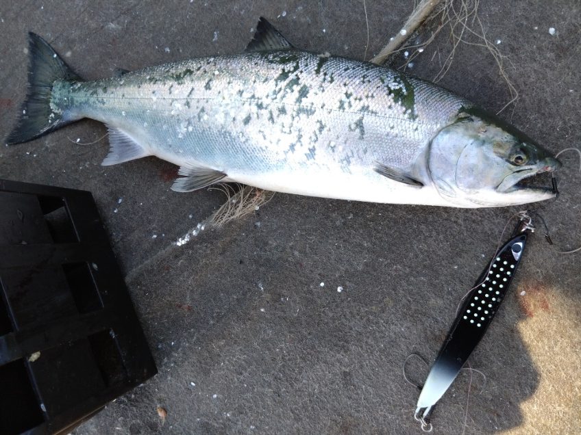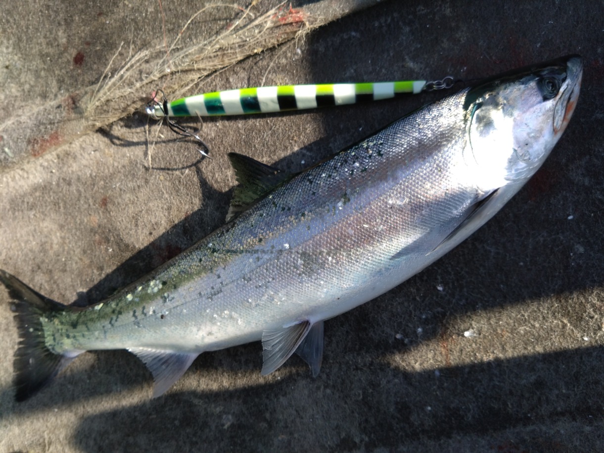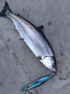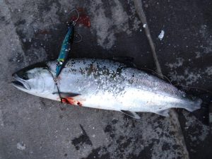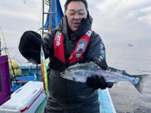 最近サクラマスジギングに目覚めた、O様。当店オリカラの猛者でゲット!