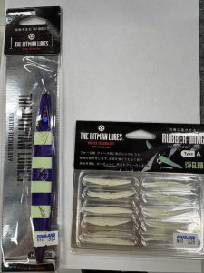ヒットマンジグのお腹面に穴あいているので、そこに専用のピロピロワームをつけると上の画像みたいになります。ジャーク時に水流を受けても良く動き波動を発生させアピールするらしいです。