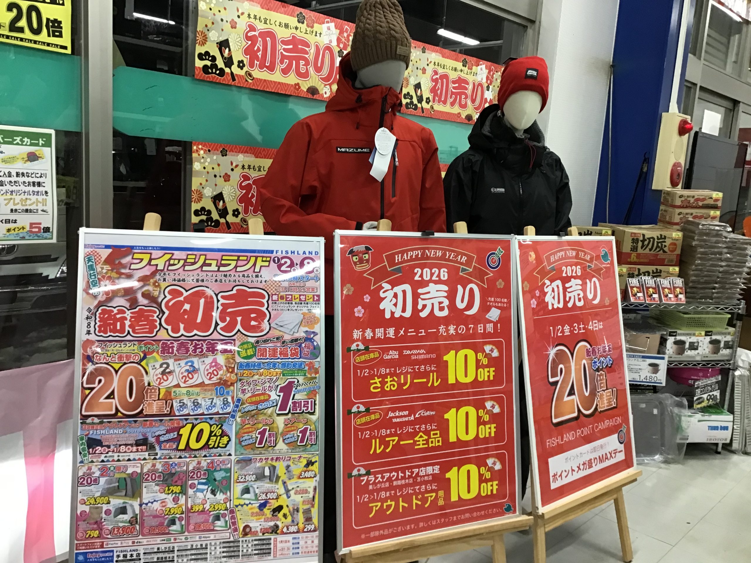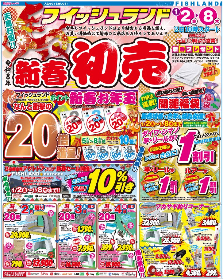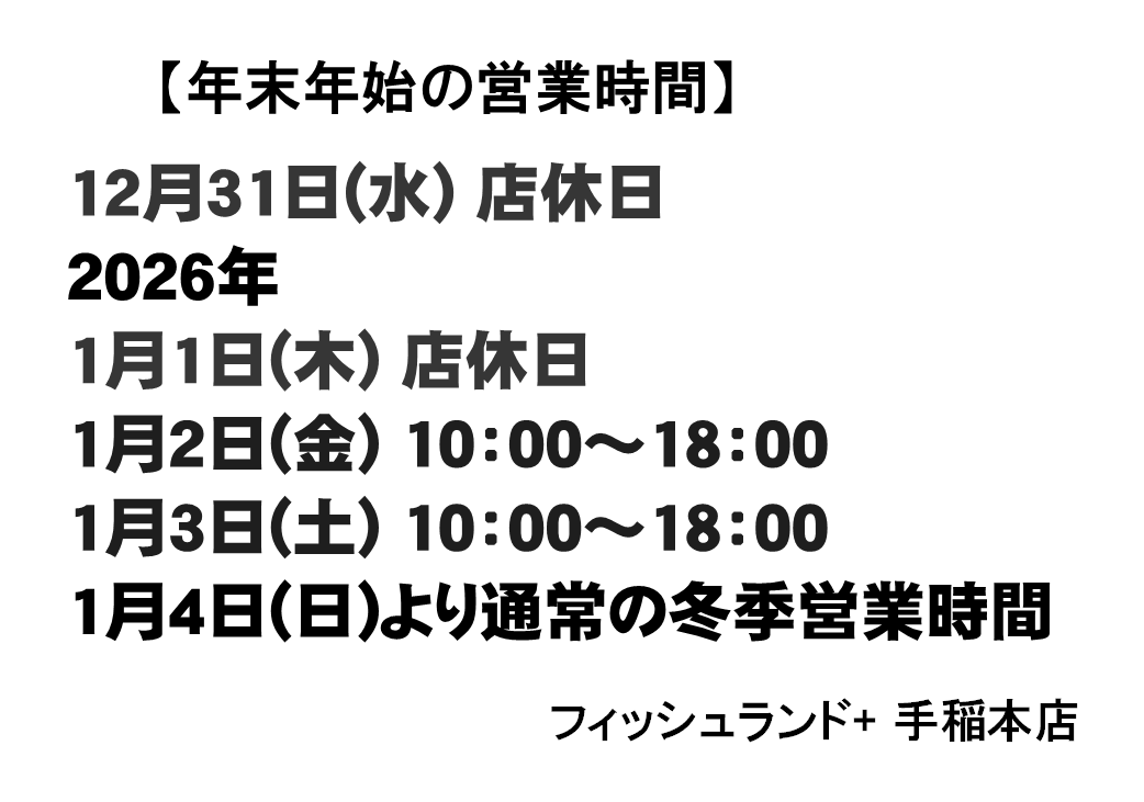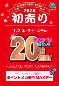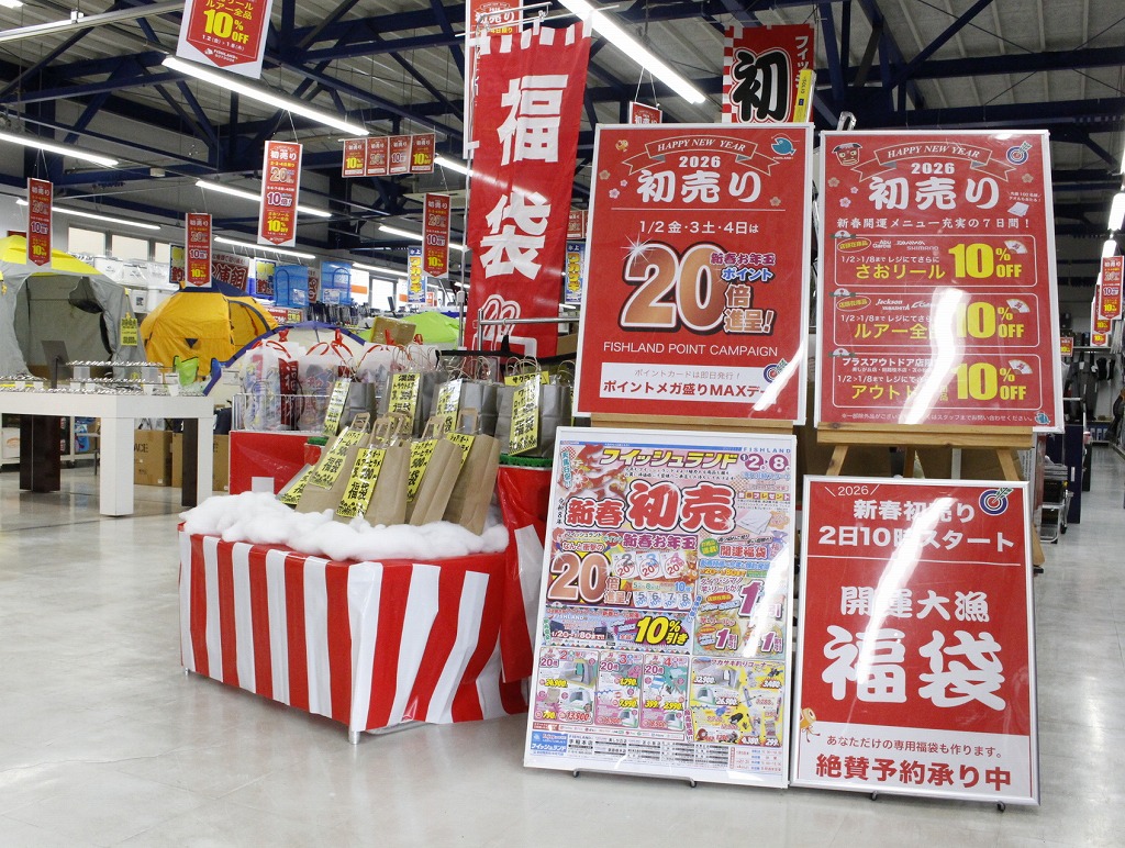 釣りを楽しんでいるお客様、そしてこれから釣りを始めてみたいというお客様にもきっと満足いただけるセール内容となっておりますので1/2【金】10:00から『新春初売』に是非、是非、ご来店くださいませ!!スタッフ一同心よりお待ちしております。