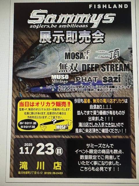 11/23(日)10:00~12:00 に滝川店 店内入口前で開催いたします